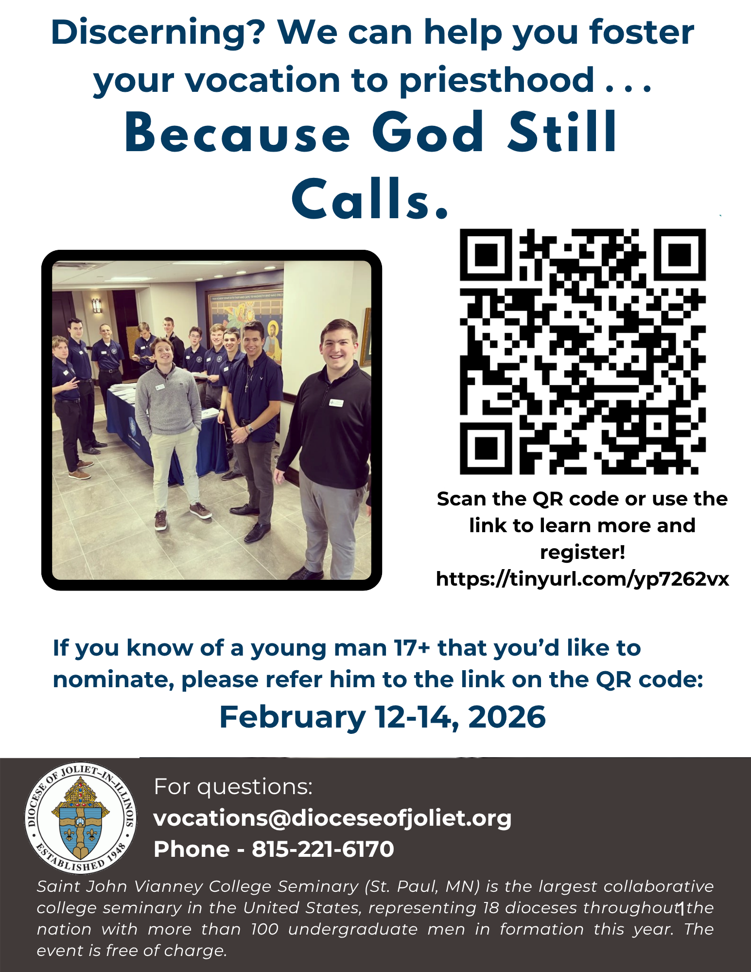 Vianney Visit provides high school juniors and seniors (ages 16 – 18) the opportunity to take a closer look and experience college seminary. Attend Mass, prayer and spiritual conferences with SJV priests and hear testimonies from SJV seminarians.
