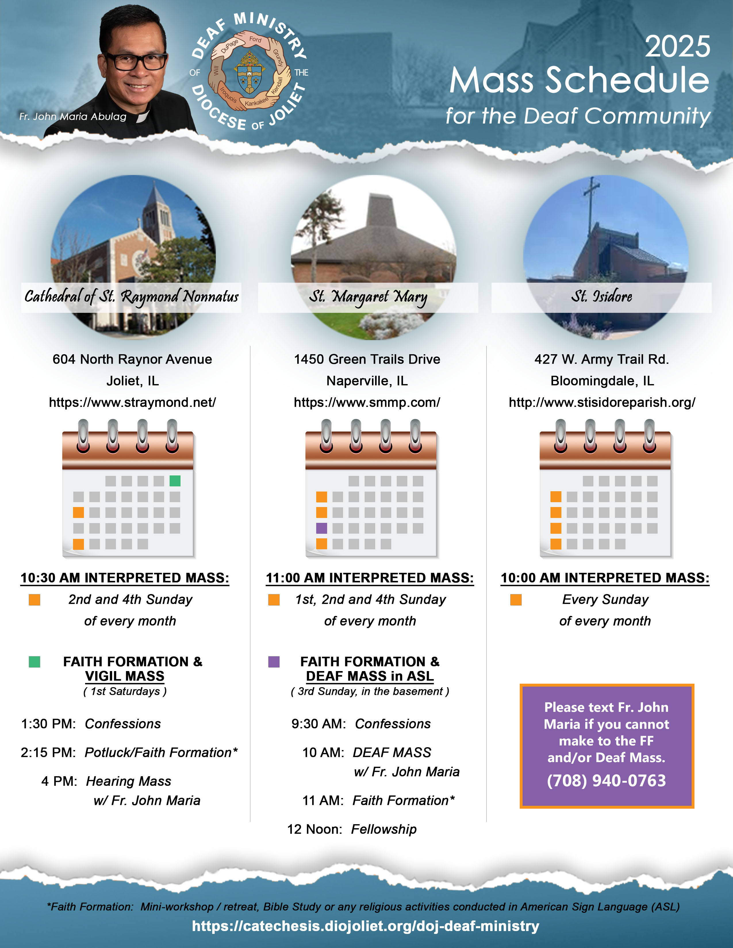 - Religous Education for K-12 Deaf or hearing children from Deaf parents (First Communion/Confirmation)