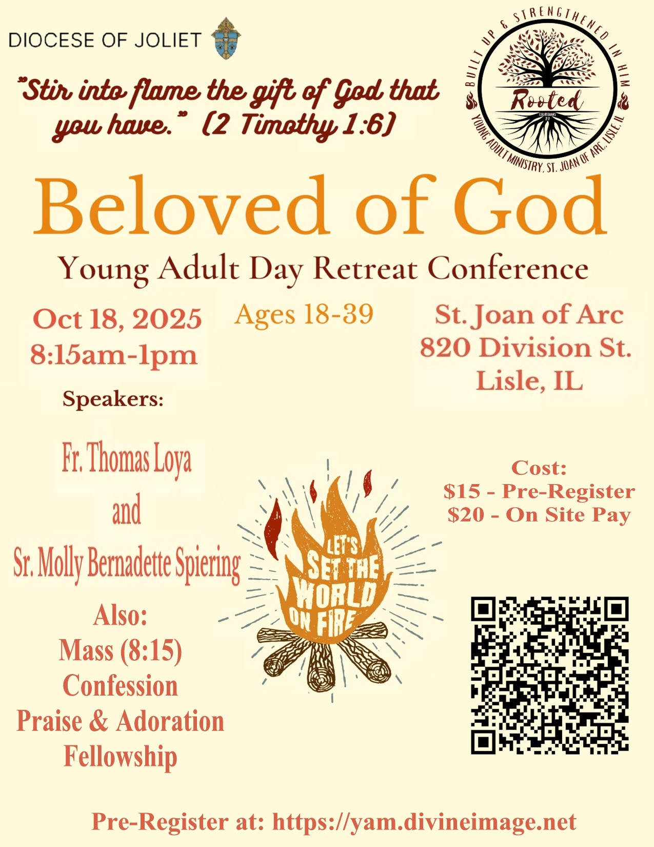 The Beloved of God Young Adult Retreat will be held Saturday, October 18th from 8:15am to 1 pm at St Joan of Arc Catholic Church, 820 Division St., Lisle IL.